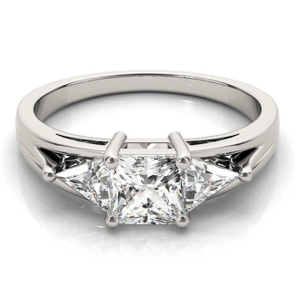 14k White Gold Engagement Ring with 1 – 5.5×5.5 Square & 2 – 4×4 Trillion Stones, equal to 1 1/3 carats total weight. Can be customized to fit any stone and in any material. Please contact Ronelli Corp for custom orders and modification information, as pricing may vary.
