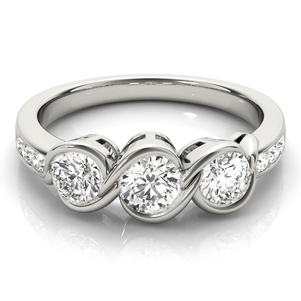 14k White Gold Engagement Ring with 1 – .35PT Round & 2 – .25PT Round & 6 – .025PT Round Stones, equal to 1 carats total weight. Can be customized to fit any stone and in any material. Please contact Ronelli Corp for custom orders and modification information, as pricing may vary.