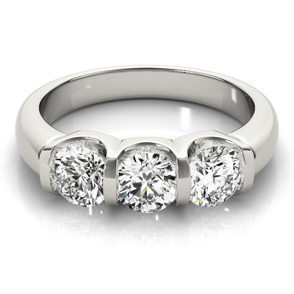 14k White Gold Engagement Ring with 3 – .5PT Round Stones, equal to 1 1/2 carats total weight. Can be customized to fit any stone and in any material. Please contact Ronelli Corp for custom orders and modification information, as pricing may vary.