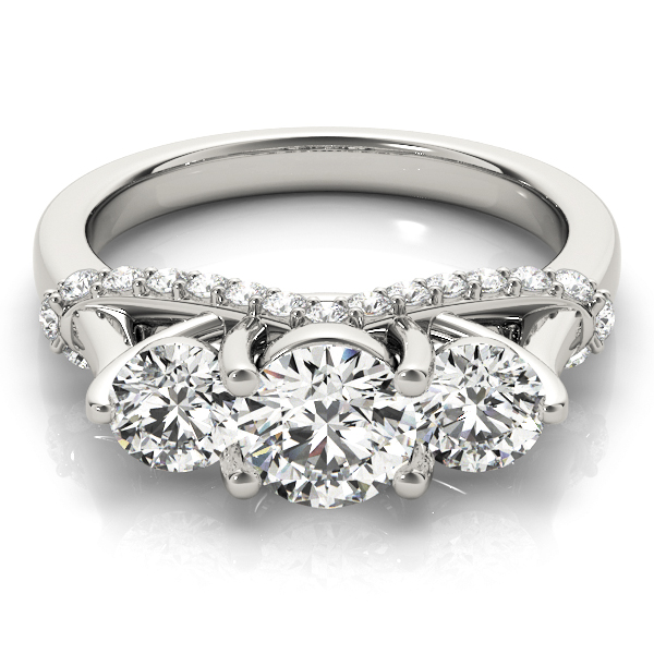 14k White Gold Engagement Ring with 1 – .75PT Round & 2 – .2PT Round & 30 – .01PT Round Stones, equal to 1 1/2 carats total weight. Can be customized to fit any stone and in any material. Please contact Ronelli Corp for custom orders and modification information, as pricing may vary.