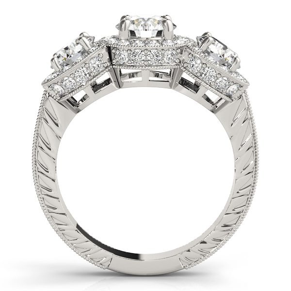 14k White Gold Engagement Ring with 1 – .75PT Round & 2 – .5PT Round & 71 – .0075PT Round Stones, equal to 2 1/3 carats total weight. Can be customized to fit any stone and in any material. Please contact Ronelli Corp for custom orders and modification information, as pricing may vary.