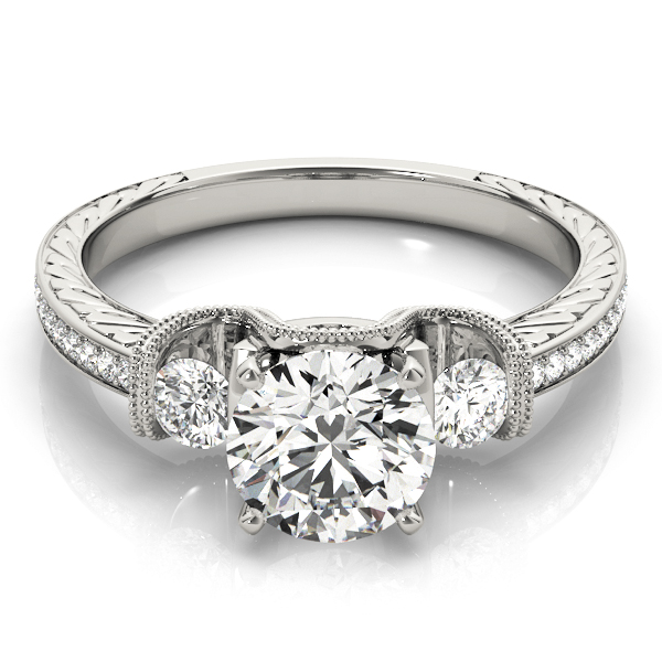 14k White Gold Engagement Ring with 14 – .004PT Round & 8 – .005PT Round & 2 – .11PT Round Stones, equal to 1/3 carats total weight. Can be customized to fit any stone and in any material. Please contact Ronelli Corp for custom orders and modification information, as pricing may vary.