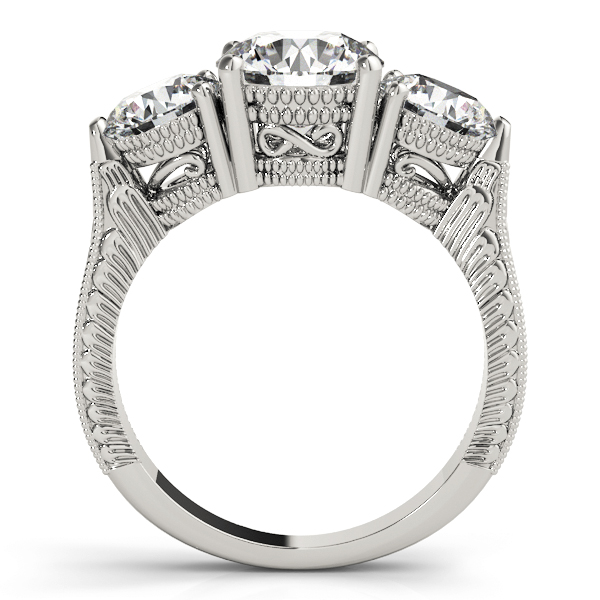 14k White Gold Engagement Ring with 1 – 1.5PT Round & 2 – .7PT Round Stones, equal to 2 7/8 carats total weight. Can be customized to fit any stone and in any material. Please contact Ronelli Corp for custom orders and modification information, as pricing may vary.