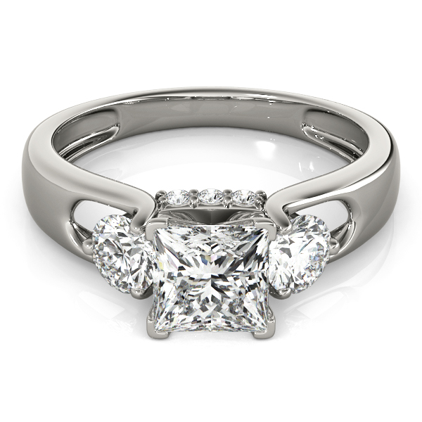 14k White Gold Engagement Ring with 6 – .01PT Round & 2 – .25PT Round Stones, equal to 1/2 carats total weight. This ring has an optional matching Wedding Band. Can be customized to fit any stone and in any material. Please contact Ronelli Corp for custom orders and modification information, as pricing may vary.