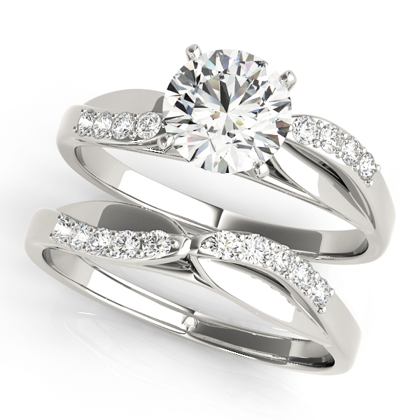 14k White Gold Engagement Ring with 8 – .01PT Round Stones, equal to 1/15 carats total weight. This ring has an optional matching Wedding Band. Can be customized to fit any stone and in any material. Please contact Ronelli Corp for custom orders and modification information, as pricing may vary.