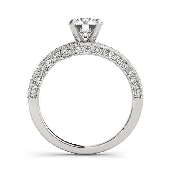 14k White Gold Engagement Ring with 4 – .005PT Round & 90 – .006PT Round Stones, equal to 1/2 carats total weight. Can be customized to fit any stone and in any material. Please contact Ronelli Corp for custom orders and modification information, as pricing may vary.