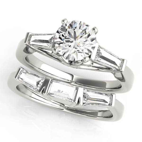 14k White Gold Engagement Ring with 2 – 5.5×2.5×2 Taper Baguette Stones, equal to 1/3 carats total weight. This ring has an optional matching Wedding Band. Can be customized to fit any stone and in any material. Please contact Ronelli Corp for custom orders and modification information, as pricing may vary.