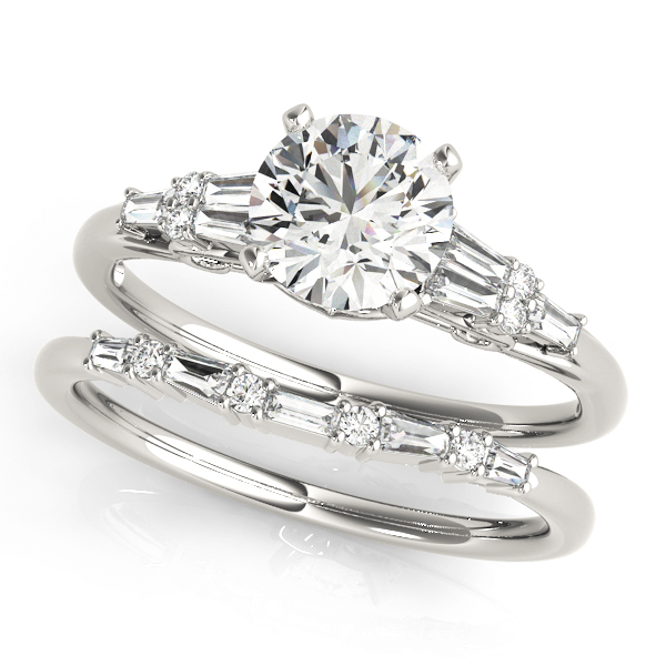 14k White Gold Engagement Ring with 4 – .0075PT Round & 2 – 2.6×1.3×1 Taper Baguette & 4 – 3×1.4×1 Taper Baguette Stones, equal to 3/8 carats total weight. This ring has an optional matching Wedding Band. Can be customized to fit any stone and in any material. Please contact Ronelli Corp for custom orders and modification information, as pricing may vary.