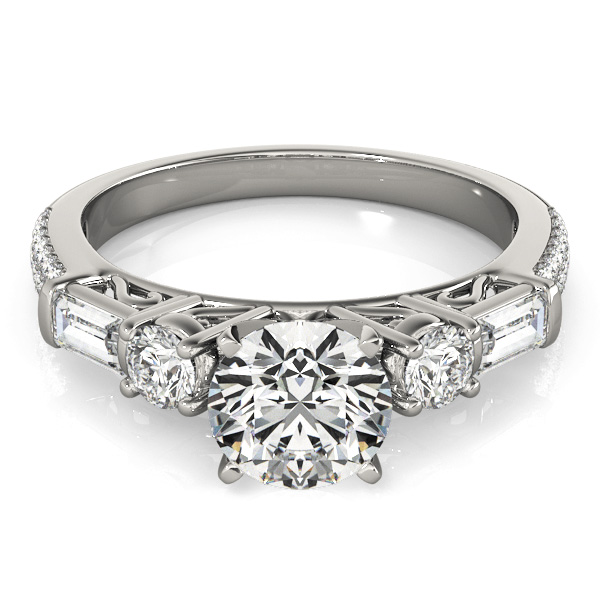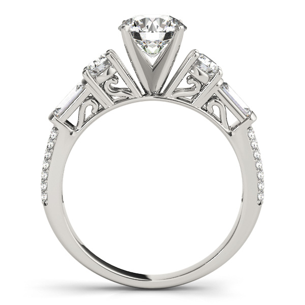 14k White Gold Engagement Ring with 42 – .004PT Round & 2 – .2PT Round & 2 – 4×2 Straight Baguette Stones, equal to 7/8 carats total weight. Can be customized to fit any stone and in any material. Please contact Ronelli Corp for custom orders and modification information, as pricing may vary.