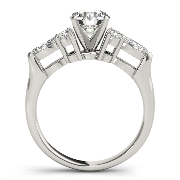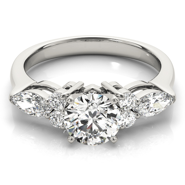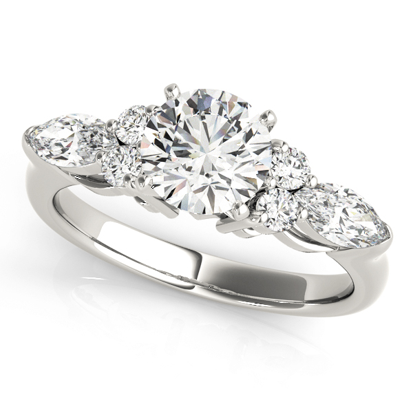 14k White Gold Engagement Ring with 2 – 6×3 Marquise & 4 – .04PT Round Stones, equal to 5/8 carats total weight. Can be customized to fit any stone and in any material. Please contact Ronelli Corp for custom orders and modification information, as pricing may vary.