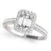 14k White Gold Engagement Ring with 1 – 10×8 Emerald & 28 – .0075PT Round Stones, equal to 1/5 carats total weight. This ring has an optional matching Wedding Band. Can be customized to fit any stone and in any material. Please contact Ronelli Corp for custom orders and modification information, as pricing may vary.