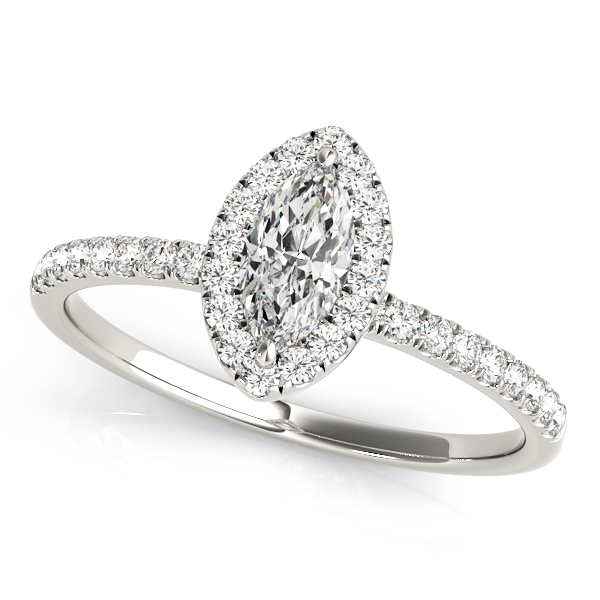 14k White Gold Engagement Ring with 1 – 10×5 Marquise & 38 – .006PT Round Stones, equal to 1 1/4 carats total weight. This ring has an optional matching Wedding Band. Can be customized to fit any stone and in any material. Please contact Ronelli Corp for custom orders and modification information, as pricing may vary.