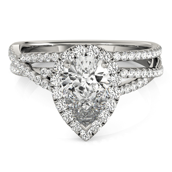 14k White Gold New Styles,Engagement Ring with 1 – Pear & 56 – .005PT Round & 20 – .0075PT Round Stones, equal to 3/8 carats total weight. This ring has an optional matching Wedding Band. Can be customized to fit any stone and in any material. Please contact Ronelli Corp for custom orders and modification information, as pricing may vary.