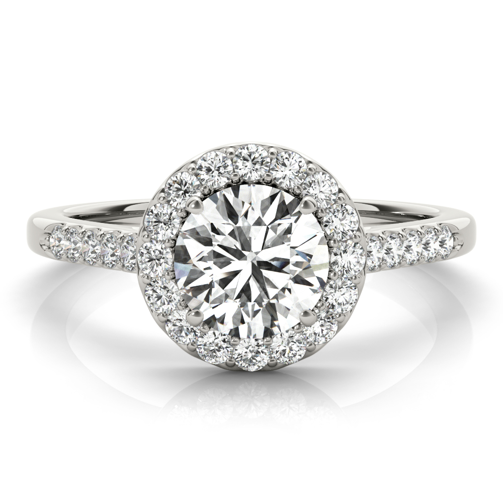 14k White Gold Engagement Ring with 1 – 1.PT Round & 2 – .01PT Round & 24 – .015PT Round Stones, equal to 1 3/8 carats total weight. This ring has an optional matching Wedding Band. Can be customized to fit any stone and in any material. Please contact Ronelli Corp for custom orders and modification information, as pricing may vary.