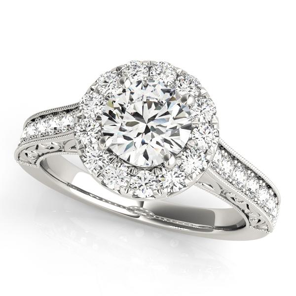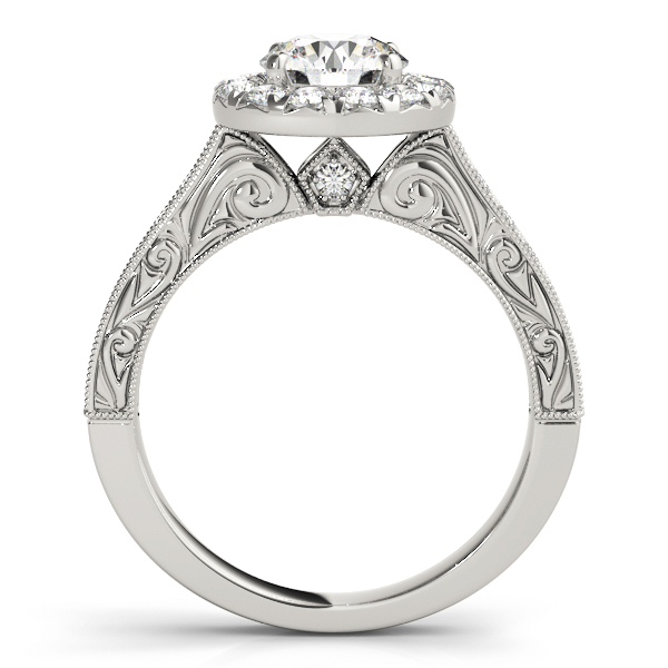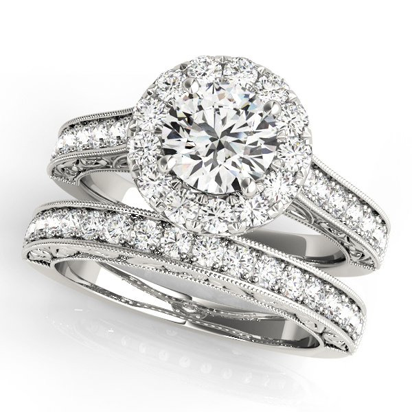 14k White Gold Engagement Ring with 1 – 1.PT Round & 2 – .01PT Round & 28 – .02PT Round Stones, equal to 1 5/8 carats total weight. This ring has an optional matching Wedding Band. Can be customized to fit any stone and in any material. Please contact Ronelli Corp for custom orders and modification information, as pricing may vary.