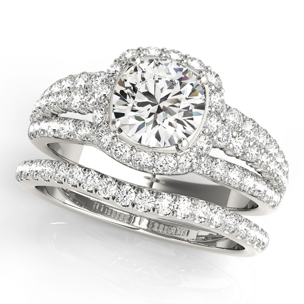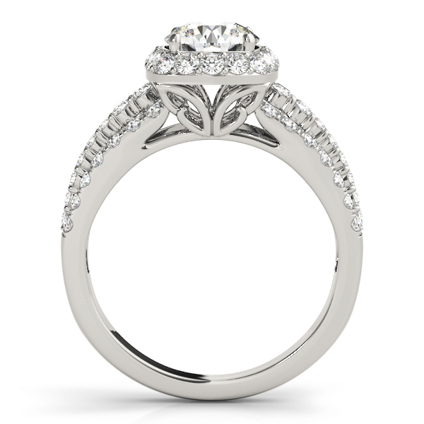 14k White Gold Engagement Ring with 1 – 1.PT Round & 44 – .015PT Round & 12 – .01PT Round & 2 – .02PT Round & 2 – .025PT Round Stones, equal to 1 7/8 carats total weight. This ring has an optional matching Wedding Band. Can be customized to fit any stone and in any material. Please contact Ronelli Corp for custom orders and modification information, as pricing may vary.