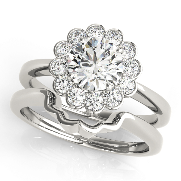 14k White Gold Engagement Ring with 1 – 1.PT Round & 12 – .0275PT Round Stones, equal to 1 1/3 carats total weight. This ring has an optional matching Wedding Band. Can be customized to fit any stone and in any material. Please contact Ronelli Corp for custom orders and modification information, as pricing may vary.