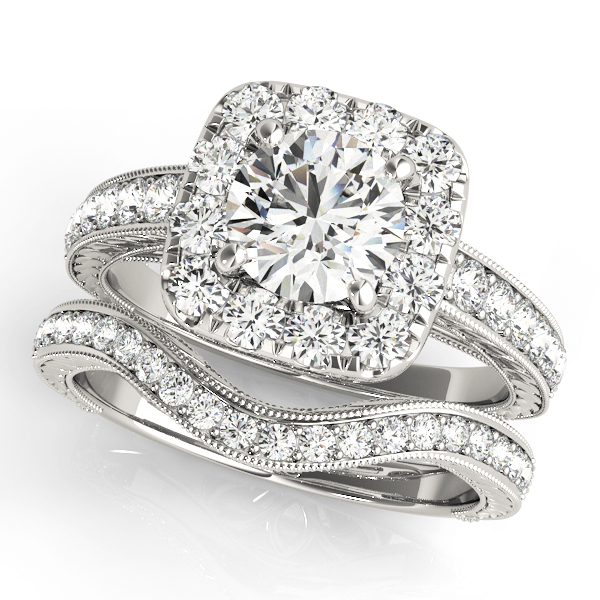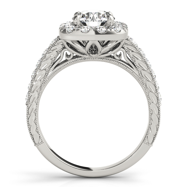 14k White Gold Engagement Ring with 2 – .015PT Round & 2 – .025PT Round & 16 – .02PT Round & 2 – .03PT Round & 2 – .035PT Round Stones, equal to 1/2 carats total weight. This ring has an optional matching Wedding Band. Can be customized to fit any stone and in any material. Please contact Ronelli Corp for custom orders and modification information, as pricing may vary.