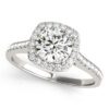 14k White Gold Engagement Ring with 1 – 1.PT Round & 2 – .015PT Round & 16 – .0125PT Round & 16 – .006PT Round Stones, equal to 1 1/3 carats total weight. This ring has an optional matching Wedding Band. Can be customized to fit any stone and in any material. Please contact Ronelli Corp for custom orders and modification information, as pricing may vary.