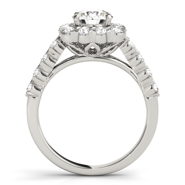 14k White Gold Engagement Ring with 1 – 1.PT Round & 8 – .065PT Round & 8 – .06PT Round & 4 – .07PT Round Stones, equal to 2 1/4 carats total weight. This ring has an optional matching Wedding Band. Can be customized to fit any stone and in any material. Please contact Ronelli Corp for custom orders and modification information, as pricing may vary.