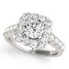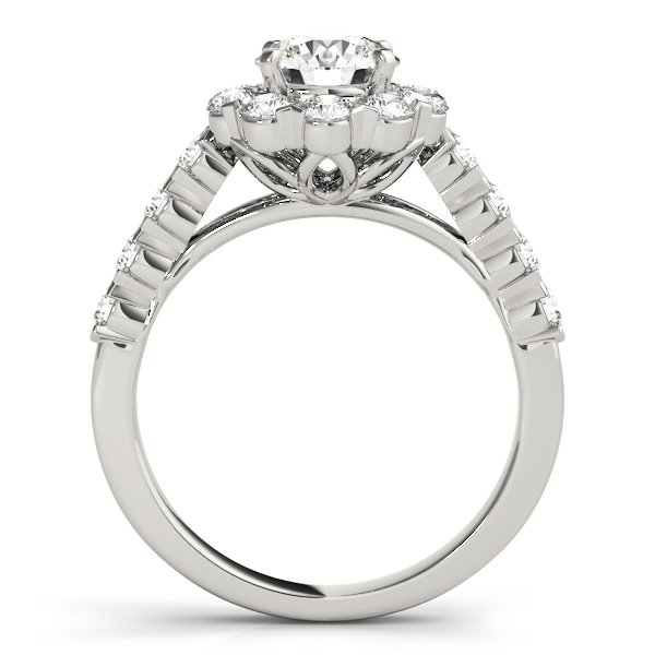 14k White Gold Engagement Ring with 1 – 1.PT Round & 18 – .065PT Round Stones, equal to 2 1/6 carats total weight. This ring has an optional matching Wedding Band. Can be customized to fit any stone and in any material. Please contact Ronelli Corp for custom orders and modification information, as pricing may vary.