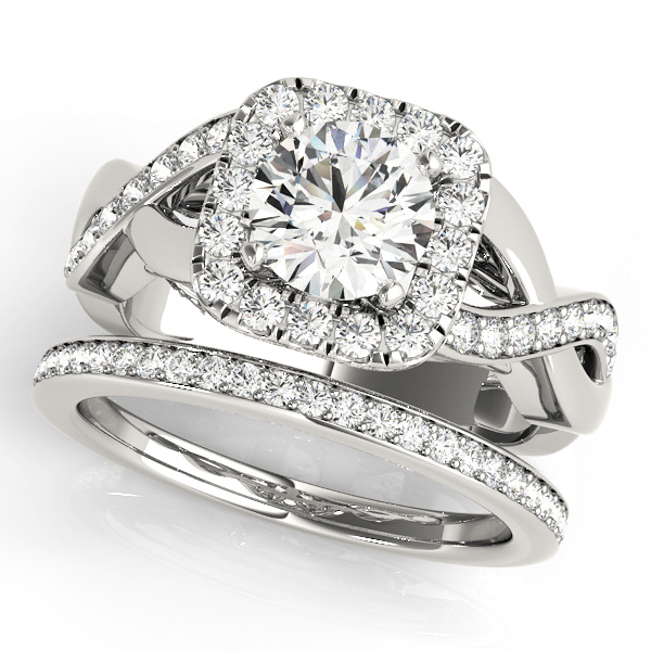 14k White Gold Engagement Ring with 24 – .0125PT Round & 16 – .015PT Round Stones, equal to 1/2 carats total weight. This ring has an optional matching Wedding Band. Can be customized to fit any stone and in any material. Please contact Ronelli Corp for custom orders and modification information, as pricing may vary.