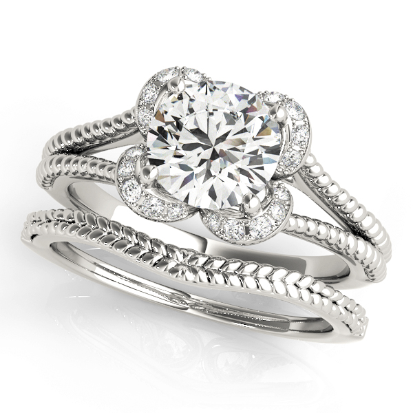 14k White Gold Engagement Ring with 1 – 1.PT Round & 16 – .006PT Round Stones, equal to 1 carats total weight. This ring has an optional matching Wedding Band. Can be customized to fit any stone and in any material. Please contact Ronelli Corp for custom orders and modification information, as pricing may vary.