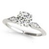 14k White Gold Engagement Ring with 1 – .5PT Round & 16 – .005PT Round & 6 – .006PT Round Stones, equal to 5/8 carats total weight. This ring has an optional matching Wedding Band. Can be customized to fit any stone and in any material. Please contact Ronelli Corp for custom orders and modification information, as pricing may vary.