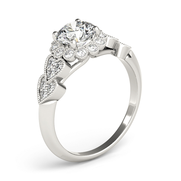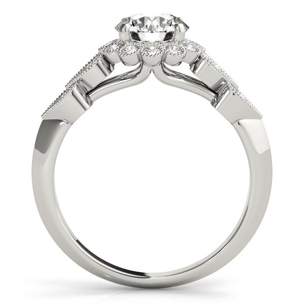 14k White Gold Engagement Ring with 1 – 1.PT Round & 12 – .005PT Round & 12 – .0075PT Round Stones, equal to 1 1/6 carats total weight. This ring has an optional matching Wedding Band. Can be customized to fit any stone and in any material. Please contact Ronelli Corp for custom orders and modification information, as pricing may vary.