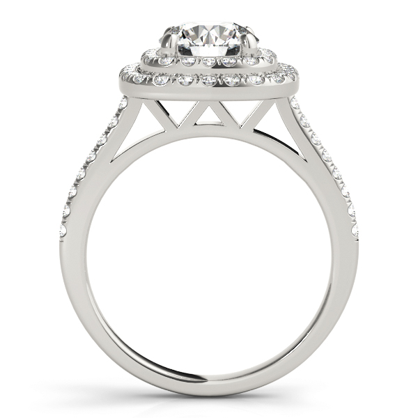 14k White Gold Engagement Ring with 1 – 1.PT Round & 36 – .0075PT Round Stones, equal to 1 1/2 carats total weight. This ring has an optional matching Wedding Band. Can be customized to fit any stone and in any material. Please contact Ronelli Corp for custom orders and modification information, as pricing may vary.