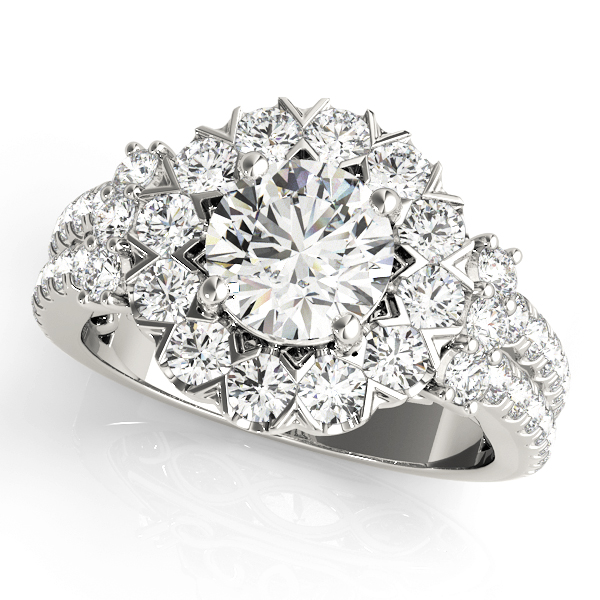 14k White Gold Engagement Ring with 1 – 1.PT Round & 20 – .015PT Round & 8 – .0175PT Round & 6 – .02PT Round Stones, equal to 2 carats total weight. This ring has an optional matching Wedding Band. Can be customized to fit any stone and in any material. Please contact Ronelli Corp for custom orders and modification information, as pricing may vary.