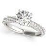 14k White Gold Engagement Ring with 1 – 1.PT Round & 4 – .004PT Round & 2 – .006PT Round & 12 – .0075PT Round & 6 – .01PT Round & 8 – .015PT Round Stones, equal to 1 1/3 carats total weight. This ring has an optional matching Wedding Band. Can be customized to fit any stone and in any material. Please contact Ronelli Corp for custom orders and modification information, as pricing may vary.