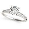 14k White Gold Engagement Ring with 1 – .5PT Round & 18 – .005PT Round & 2 – .015PT Round & 2 – .04PT Round Stones, equal to 3/4 carats total weight. This ring has an optional matching Wedding Band. Can be customized to fit any stone and in any material. Please contact Ronelli Corp for custom orders and modification information, as pricing may vary.
