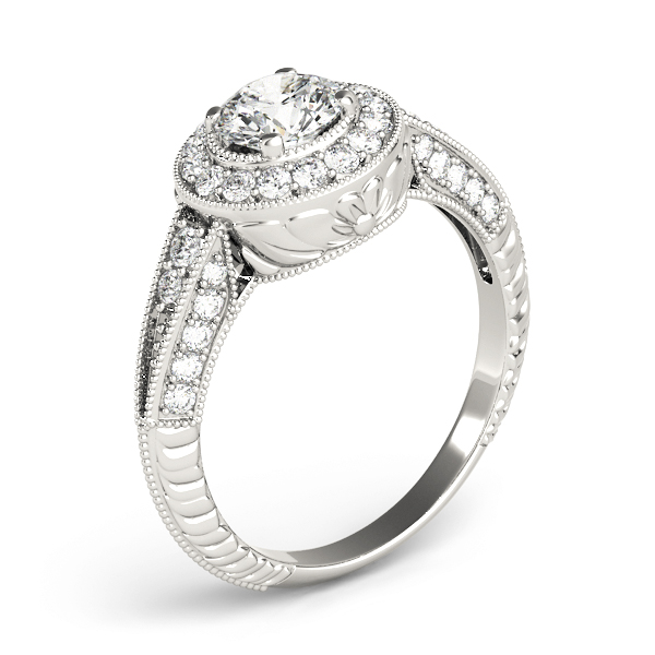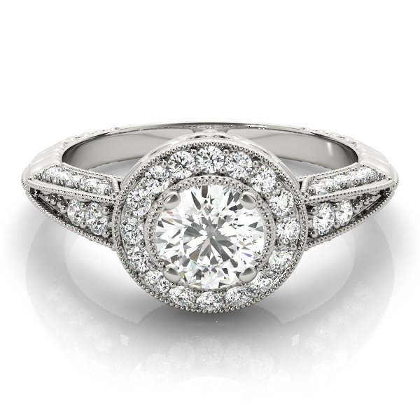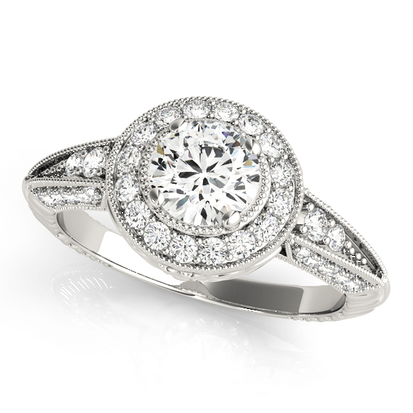 14k White Gold Engagement Ring with 1 – .47PT Round & 2 – .02PT Round & 18 – .01PT Round & 20 – .0075PT Round Stones, equal to 7/8 carats total weight. Can be customized to fit any stone and in any material. Please contact Ronelli Corp for custom orders and modification information, as pricing may vary.