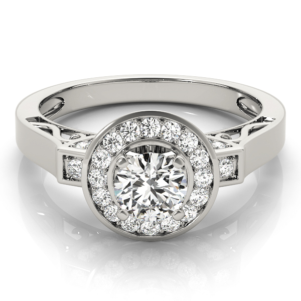 14k White Gold Engagement Ring with 18 – .01PT Round & 24 – .005PT Round & 2 – .02PT Round & 4 – .0075PT Round Stones, equal to 3/8 carats total weight. Can be customized to fit any stone and in any material. Please contact Ronelli Corp for custom orders and modification information, as pricing may vary.