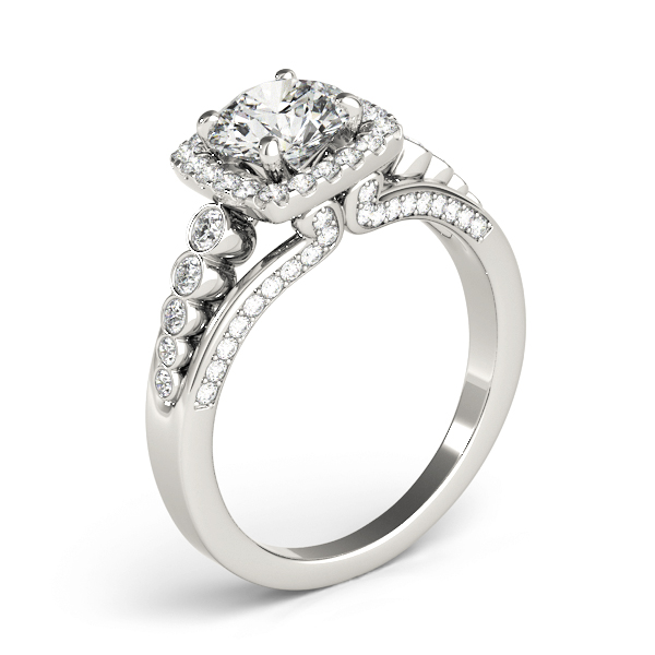 14k White Gold Engagement Ring with 2 – .03PT Round & 2 – .02PT Round & 2 – .015PT Round & 4 – .01PT Round & 60 – .0075PT Round Stones, equal to 5/8 carats total weight. Can be customized to fit any stone and in any material. Please contact Ronelli Corp for custom orders and modification information, as pricing may vary.