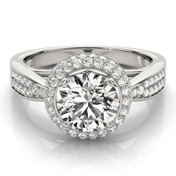 14k White Gold Engagement Ring with 2 – .01PT Round & 16 – .0075PT Round & 49 – .006PT Round & 6 – .005PT Round Stones, equal to 1/2 carats total weight. Can be customized to fit any stone and in any material. Please contact Ronelli Corp for custom orders and modification information, as pricing may vary.