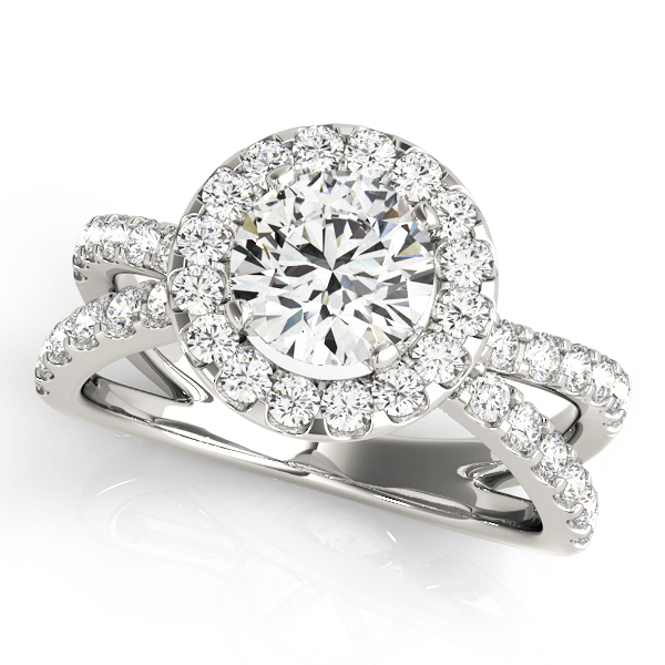 14k White Gold Engagement Ring with 56 – .015PT Round Stones, equal to 7/8 carats total weight. Can be customized to fit any stone and in any material. Please contact Ronelli Corp for custom orders and modification information, as pricing may vary.