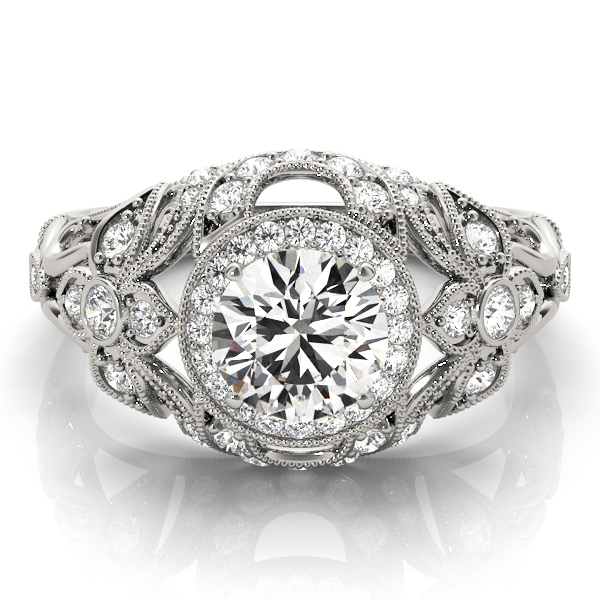 14k White Gold Engagement Ring with 1 – .8PT Round & 2 – .015PT Round & 8 – .0125PT Round & 20 – .01PT Round & 16 – .005PT Round Stones, equal to 1 1/5 carats total weight. Can be customized to fit any stone and in any material. Please contact Ronelli Corp for custom orders and modification information, as pricing may vary.