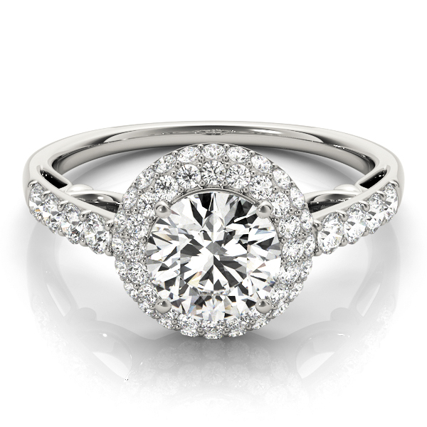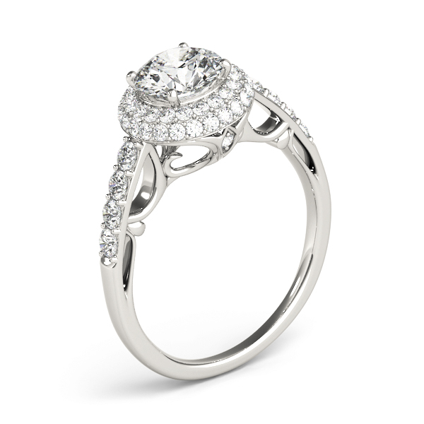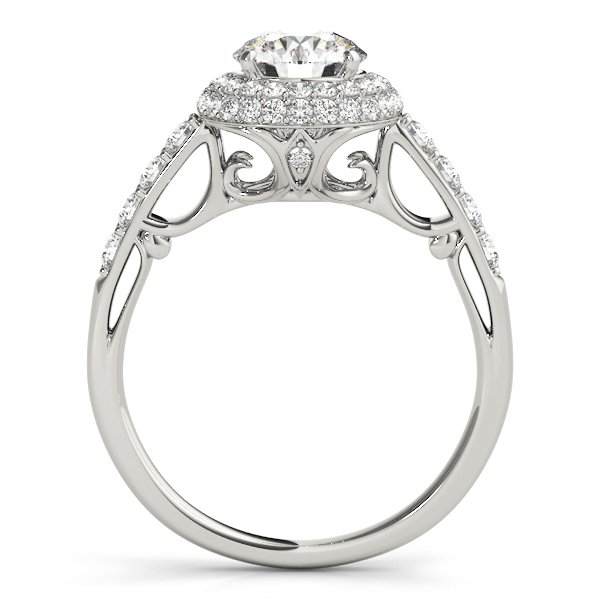 14k White Gold Engagement Ring with 1 – 1.PT Round & 4 – .03PT Round & 4 – .025PT Round & 46 – .0075PT Round Stones, equal to 1 1/2 carats total weight. Can be customized to fit any stone and in any material. Please contact Ronelli Corp for custom orders and modification information, as pricing may vary.