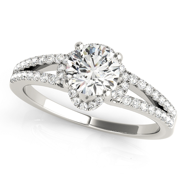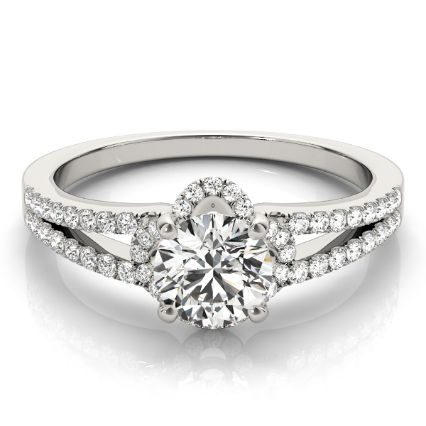 14k White Gold Engagement Ring with 1 – .75PT Round & 56 – .003PT Round Stones, equal to 7/8 carats total weight. Can be customized to fit any stone and in any material. Please contact Ronelli Corp for custom orders and modification information, as pricing may vary.