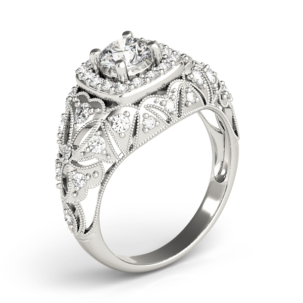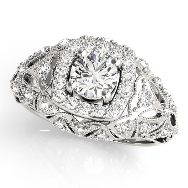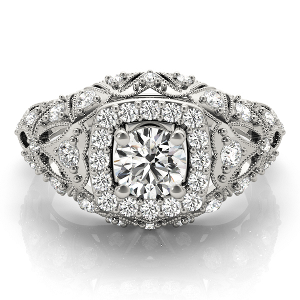 14k White Gold Engagement Ring with 1 – .5PT Round & 24 – .01PT Round & 16 – .0125PT Round Stones, equal to 7/8 carats total weight. Can be customized to fit any stone and in any material. Please contact Ronelli Corp for custom orders and modification information, as pricing may vary.