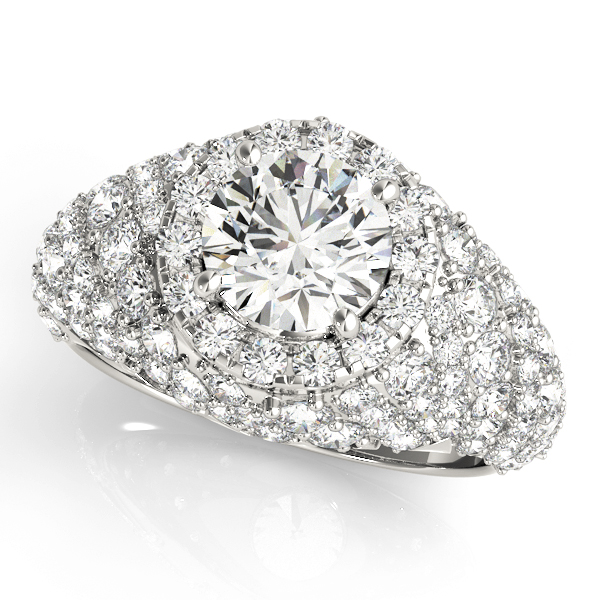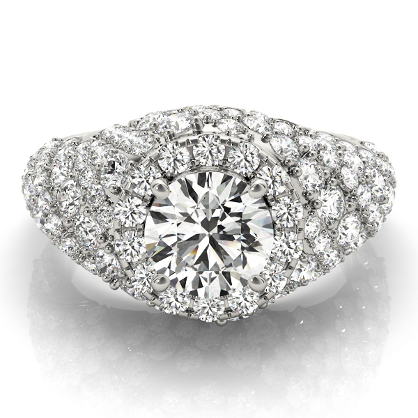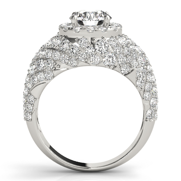 14k White Gold Engagement Ring with 1 – 1.PT Round & 4 – .005PT Round & 74 – .006PT Round & 4 – .01PT Round & 20 – .015PT Round & 4 – .02PT Round & 10 – .03PT Round & 12 – .04PT Round Stones, equal to 2 5/8 carats total weight. Can be customized to fit any stone and in any material. Please contact Ronelli Corp for custom orders and modification information, as pricing may vary.