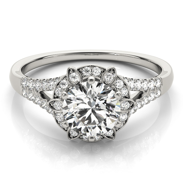 14k White Gold Engagement Ring with 1 – .75PT Round & 42 – .005PT Round Stones, equal to 1 carats total weight. Can be customized to fit any stone and in any material. Please contact Ronelli Corp for custom orders and modification information, as pricing may vary.