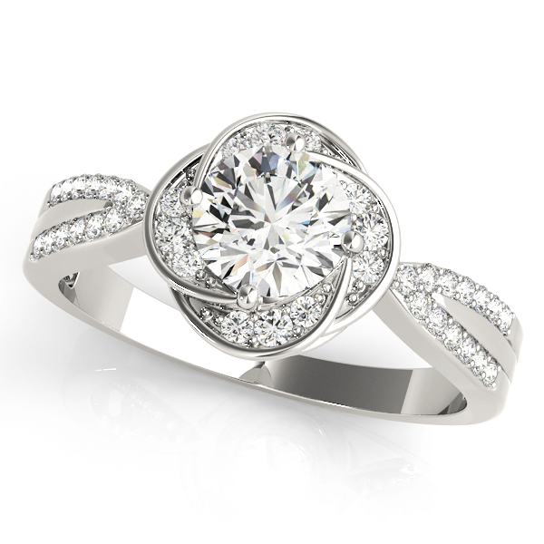 14k White Gold Engagement Ring with 1 – .33PT Round & 4 – .003PT Round & 30 – .004PT Round & 4 – .005PT Round Stones, equal to 1/2 carats total weight. Can be customized to fit any stone and in any material. Please contact Ronelli Corp for custom orders and modification information, as pricing may vary.