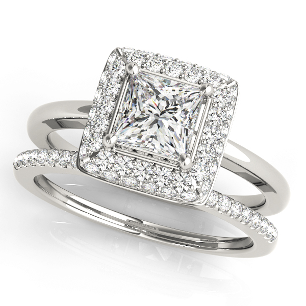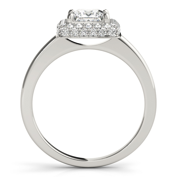 14k White Gold Engagement Ring with 1 – 5.5×5.5 Square & 44 – .01PT Round Stones, equal to 1 3/8 carats total weight. This ring has an optional matching Wedding Band. Can be customized to fit any stone and in any material. Please contact Ronelli Corp for custom orders and modification information, as pricing may vary.