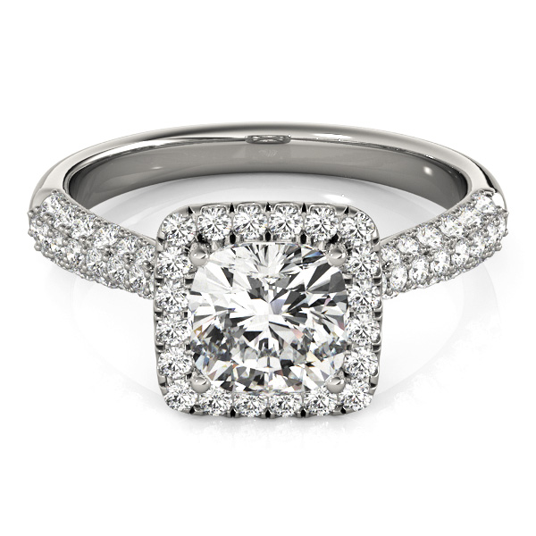 14k White Gold Engagement Ring with 1 – 5.5×5.5 Cushion & 8 – .004PT Round & 16 – .005PT Round & 16 – .0075PT Round & 12 – .006PT Round Stones, equal to 1 1/3 carats total weight. This ring has an optional matching Wedding Band. Can be customized to fit any stone and in any material. Please contact Ronelli Corp for custom orders and modification information, as pricing may vary.