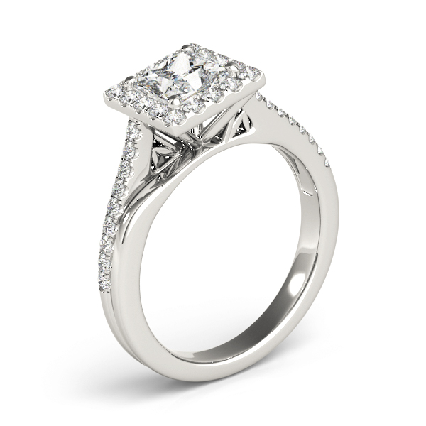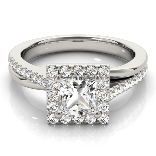 14k White Gold Engagement Ring with 1 – 5.5×5.5 Square & 18 – .01PT Round & 16 – .013PT Round Stones, equal to 1 3/8 carats total weight. Can be customized to fit any stone and in any material. Please contact Ronelli Corp for custom orders and modification information, as pricing may vary.