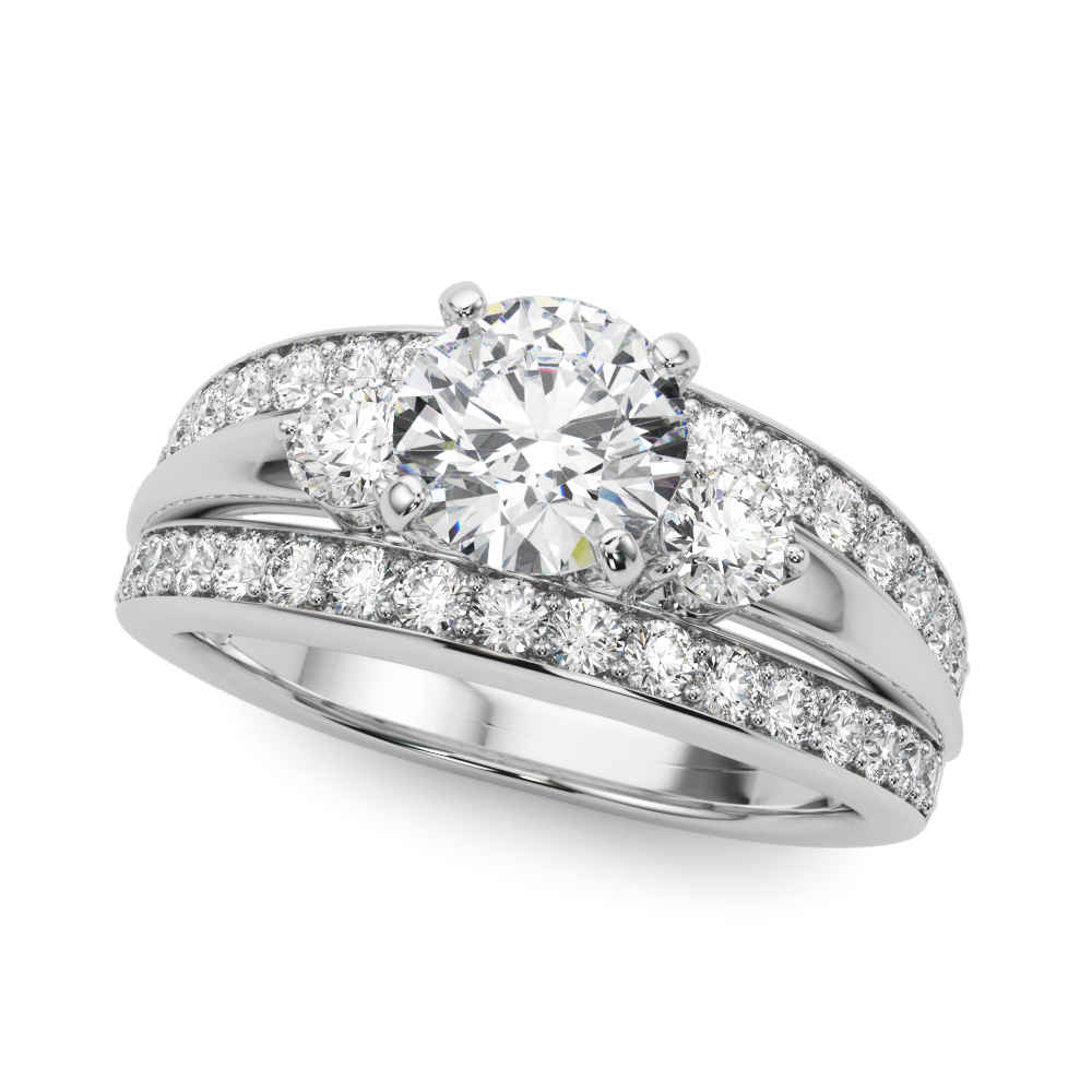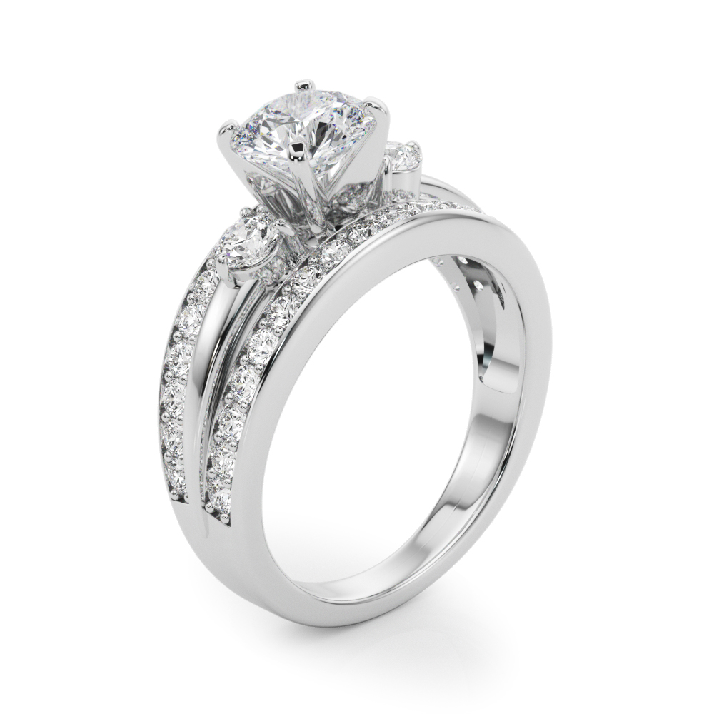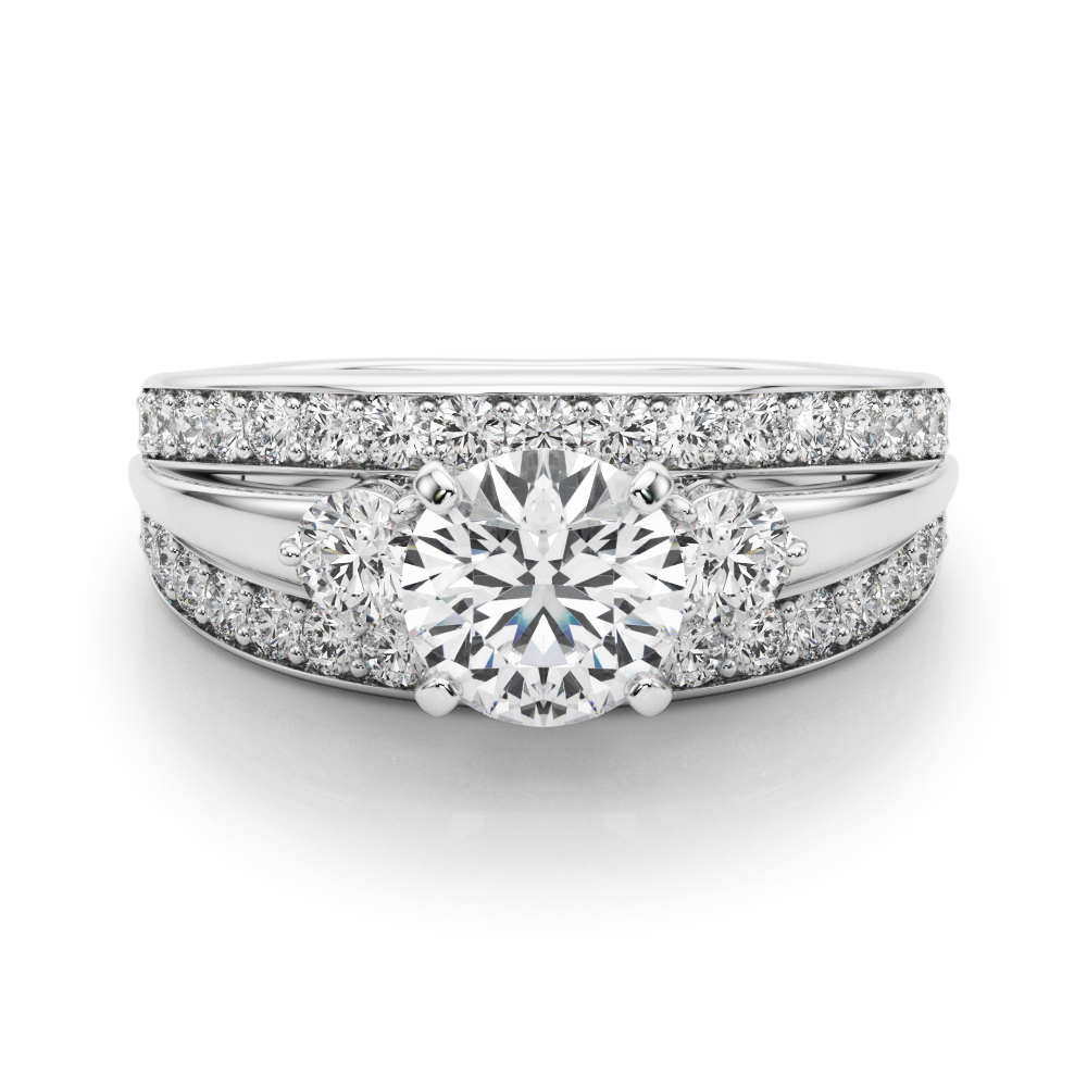 14k White Gold Engagement Ring with 12 – .015PT Round & 2 – .1PT Round & 14 – .02PT Round & 8 – .0125PT Round Stones, equal to 3/4 carats total weight. This ring has an optional matching Wedding Band. Can be customized to fit any stone and in any material. Please contact Ronelli Corp for custom orders and modification information, as pricing may vary.
