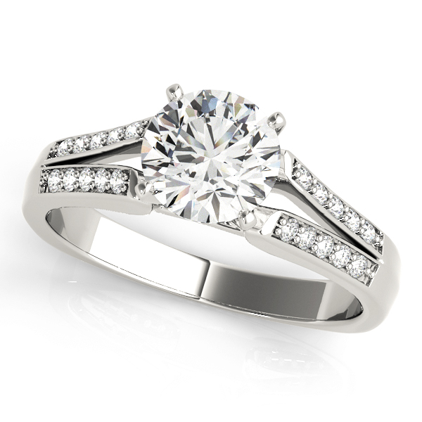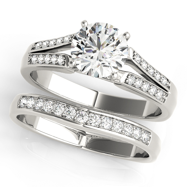 14k White Gold Engagement Ring with 12 – .01PT Round & 8 – .0075PT Round Stones, equal to 1/5 carats total weight. This ring has an optional matching Wedding Band. Can be customized to fit any stone and in any material. Please contact Ronelli Corp for custom orders and modification information, as pricing may vary.
